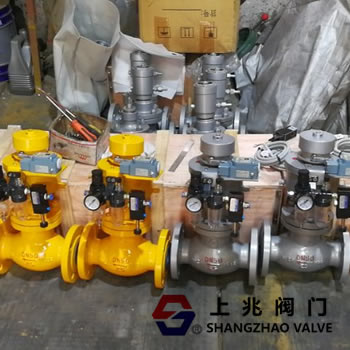 由多彈簧氣動薄膜執(zhí)行機構或浮動式活塞執(zhí)行機構與調節(jié)閥組成,接收儀器的信號,控制工藝管道內流體的切斷、接通或切換。具有結構簡單,反應靈敏,動作可靠 等特點?!稓鈩泳o急切斷閥》內結構裝有低熔點(易熔合金)的塞子,在外界≥80C溫度(易熔金)熔化,堵塞氣管泄壓。液氨緊急切斷閥迅速關 閉,保護貯罐系統(tǒng)的安全。